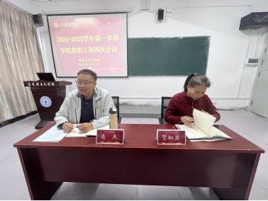 马克思主义学院讯 为推动习近平新时代中国特色社会主义思想大学习领航计划主题教育活动的开展,促进学院思政课教学与科研工作发展,2024年10月22日下午,马克思主义学院于主教学楼240会议室召开本学期第四次教职工工作会议,全体教师参加会议,会议由学院院长肖杰主持。