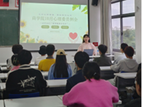 商学院讯(文:胡奕萱)为进一步加强学校心理健康教育工作,充分发挥班级心理委员的作用,同时提高心理委员团队的凝聚力和工作效率,更好地为班级同学提供心理健康服务。商学院于10月8日下午4:30在410教室成功召开心理委员例会。此次例会由商学院心理工作站站长赵思芬老师主持,商学院心理委员到会参加。