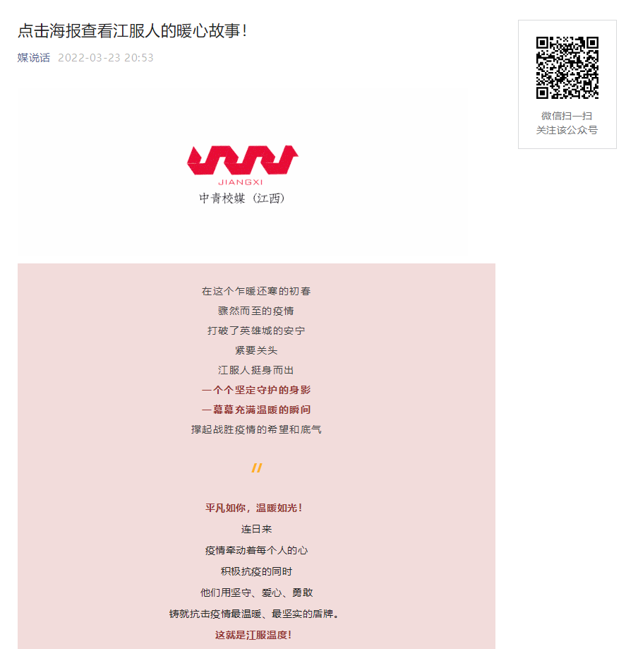 中青校媒:点击海报查看江服人的暖心故事!