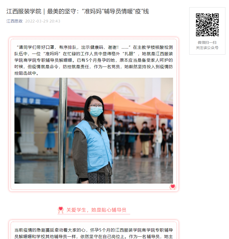 江西思政:江西服装学院|最美的坚守:“准妈妈”辅导员情暖“疫”线