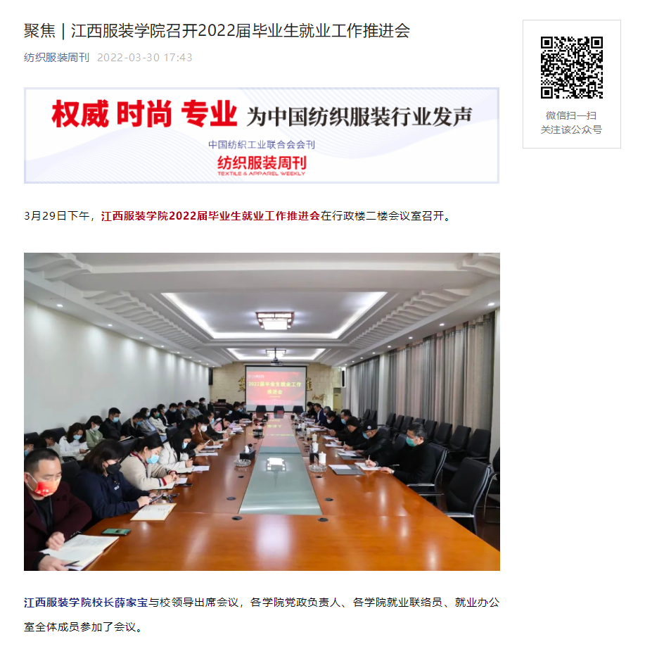 纺织服装周刊:聚焦 | 江西服装学院召开2022届毕业生就业工作推进会
