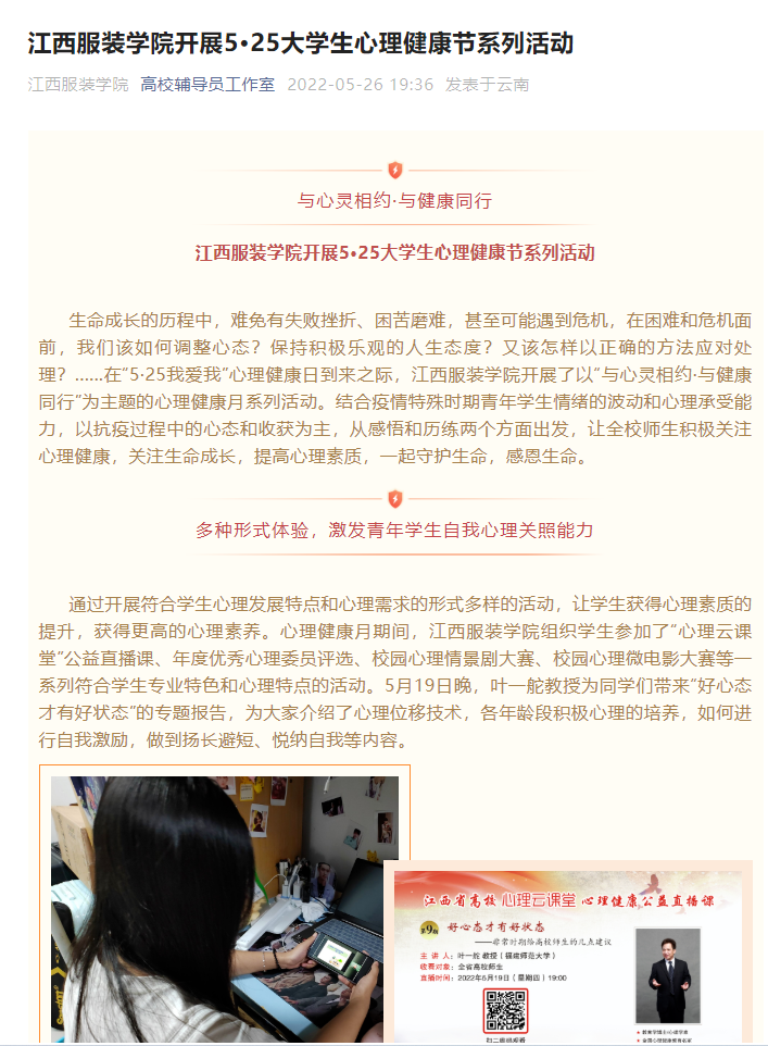 高校辅导员工作室对此进行了报道,以下为新闻链接: