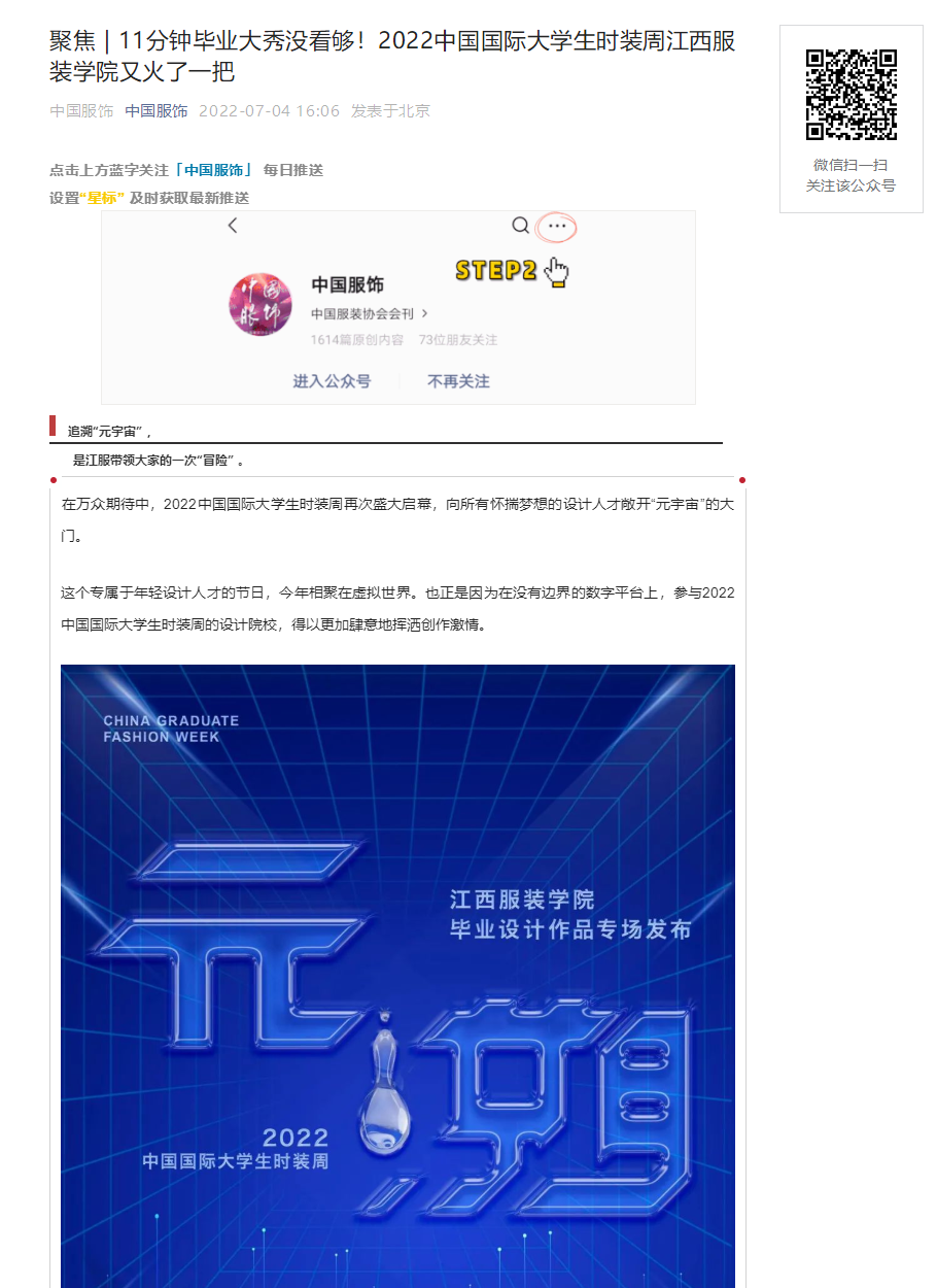 中国服饰对我校2022中国国际大学生时装周毕业作品发布会进行了报道,以下为新闻链接: