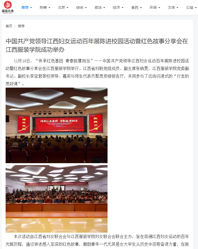 基层头条:传承红色基因 青春挺膺担当——中国共产党领导江西妇女运动百年展陈进校园活动暨红色故事分享会在江西服装学院成功举办